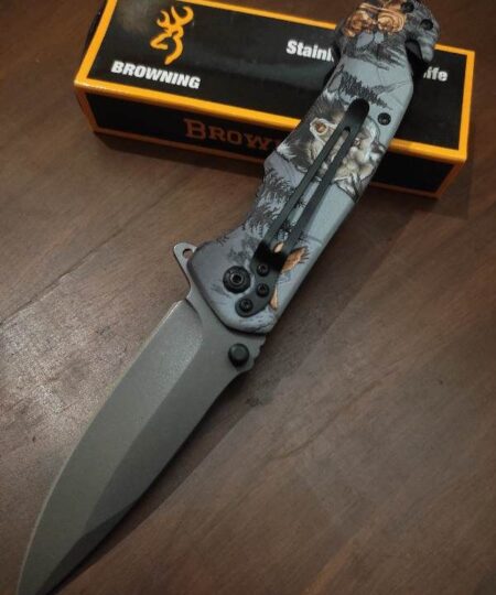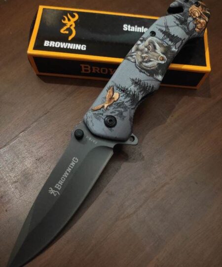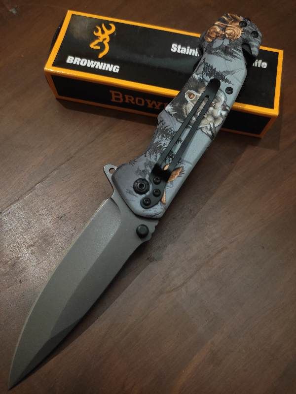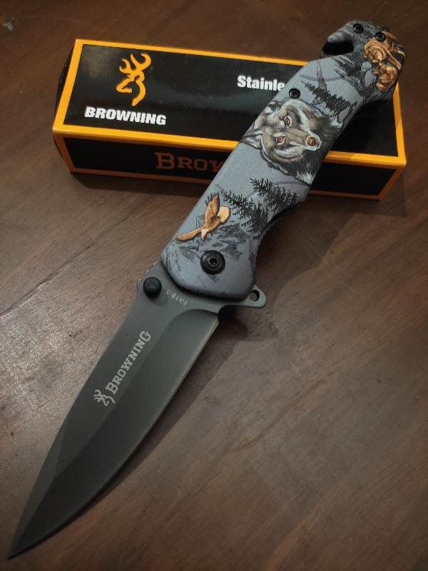 Browning FA18 WOLF Flip Open Hunting Knife With Belt Clip Holder Cord Cutter Tail Glass Breaker